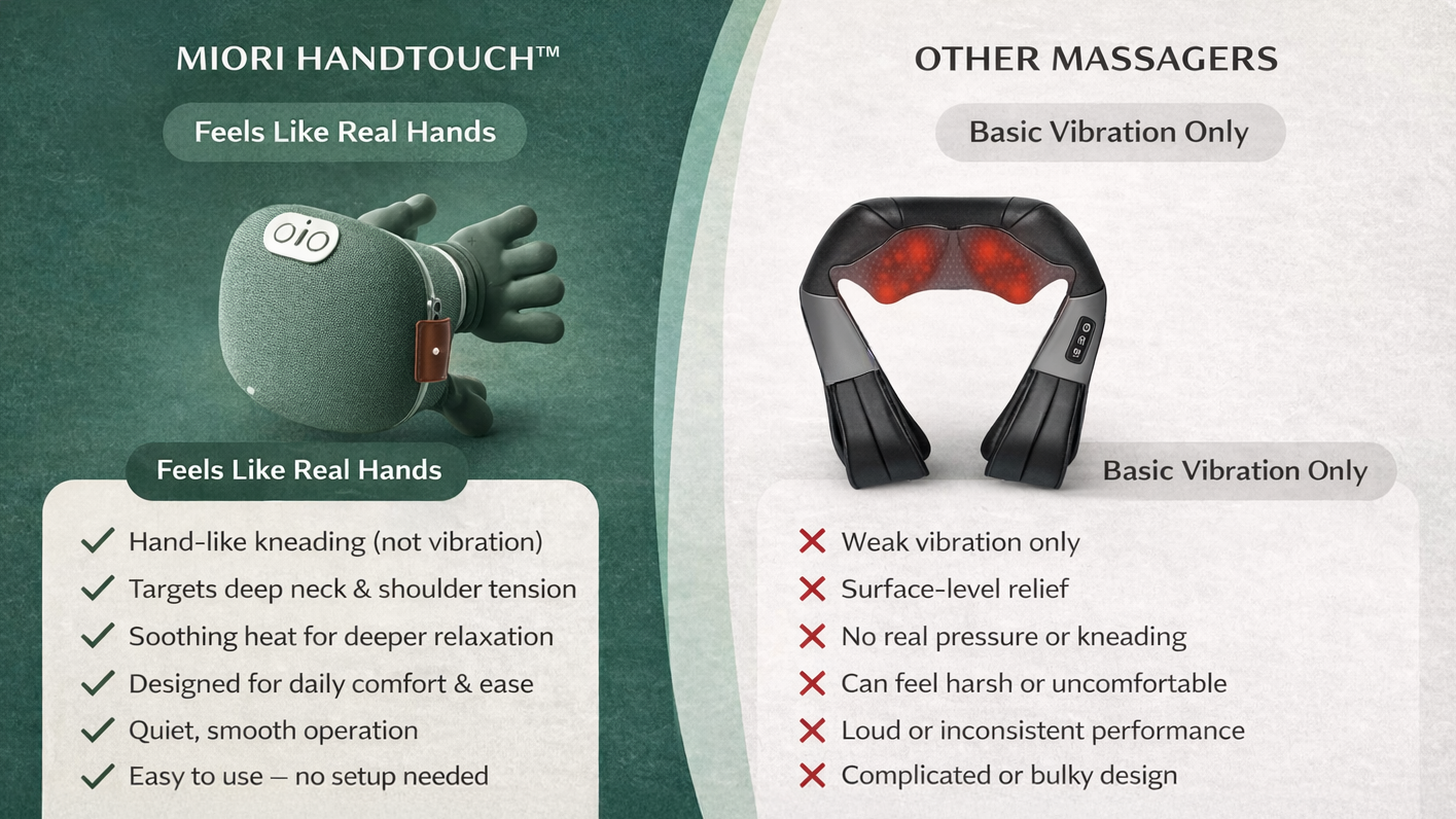 Designed for long days, tight shoulders, and constant screen time. Miori HandTouch™ helps you unwind faster — anytime, anywhere.